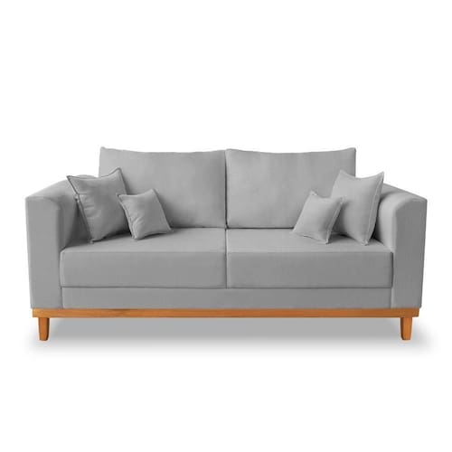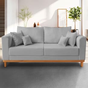Sofá Viena 03 Lugares Com Base de Madeira Linho Cinza - Madeira Prima Deccor