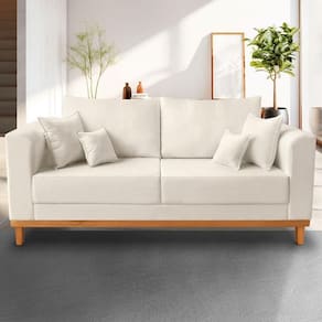 Sofá Viena 03 Lugares Com Base de Madeira Linho Bege - Madeira Prima Deccor