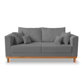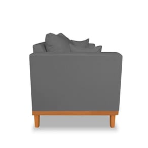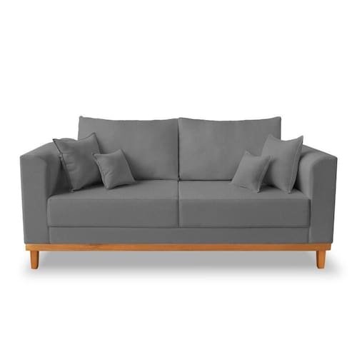 Sofá Viena 03 Lugares Com Base de Madeira Linho Grafite - Madeira Prima Deccor