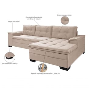 Cor: Preto | Altura: 92 | Peso do Produto: 40 | Garantia do Fabricante: 3 | Tonalidade: Preto | Cômodo Indicado: Salas | Produto: Sofá | Tipo de Tecido: Suede | Quantidade de Lugares: 3 | Complexidade de Montagem: Baixa: pode ser montado por uma pessoa leiga | Conservação e Manutenção do Produto: Não utilizar produtos químicos | Largura: 87 | Tipo do Sofá: com Chaise | Capacidade de Peso: 300 | Tempo Estimado de Montagem: 5 | Comprimento: 260 | Assento Retrátil: Não Retrátil Cor: Areia 376