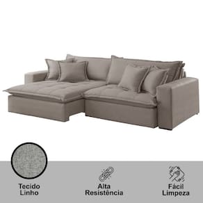 Assento com tecnologia retrátil, este sofá apresenta percinta elástica, molas ensacadas, uma camada de espuma D28, pillow de 15cm e molas espirais para proporcionar o máximo conforto e durabilidade.