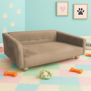 Sofazinho Cama Pet Baby Hanna Luxo Suede Sofazinho é ideal para quem quer dar ao seu animal de estimação um lugar próprio e confortável para relaxar e descansar. Além disso, a estética sofisticada do Suede e da madeira pode complementar a decoração da sua casa, adicionando um toque de estilo.