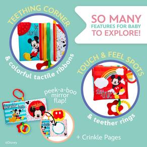 Kids Preferred Disney Baby Mickey Mouse Livro macio colorido com canto de dentição e clipe para bebês - TEMPO DA HISTÓRIA CLÁSSICO: Ajude o bebê a aprender e começar a hora da história com um livro de tecido macio com Mickey Mouse. Um adorável livro de 12,7 cm em movimento permite que o bebê brinque enquanto você lê uma história juntos. - Brinquedo macio para dentição: materiais interativos divertidos mantêm o bebê envolvido. Este livro apresenta som enrugado, um clipe C para fixar ao carrinho ou assento do carro, um espelho e um mordedor texturizado. - PRIMEIRO BRINQUEDO PARA BEBÊS: Um item essencial para bebês, este brinquedo para assento de carro e carrinho de bebê é ideal para chás de bebê, 1º aniversário e é popular para meninos e meninas de 0 meses a crianças. Lavável na máquina e livre de BPA. - CRINKLE BOOK: Livros macios, ou livros mordedores, são brinquedos retrô clássicos que divertem bebês há décadas. Este livro infantil interativo encanta os bebês com texturas, sons e cores brilhantes para descobrir. - BRINQUEDO CLÁSSICO MODERNO: o maravilhoso mundo dos personagens icônicos da Disney são instantaneamente reconhecíveis, trazendo doces memórias de sua própria infância enquanto ajudam seu filho a aprender, brincar e crescer.
