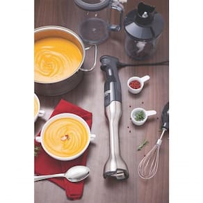 - Potência: 550W;- Frequência: 60 Hz;- Copo de 1,25 litros; - Rotação máxima: rpm;- Protetor de lâmina antirriscos; - Lâminas de aço inox para triturar gelo;- Haste de mistura extralonga de 24 cm;- Cabo de alimentação extralongo 1,80m;- Processador de 750 ml e batedor de arame;- Controle de velocidade variável - 15 configurações;- Tampa de armazenagem, funciona também como base antiderrapante;- Foto meramente ilustrativa.
