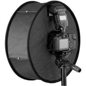 Softbox Circular Para Flash De 46Cm - F32 - 1 Unidade Softbox circular para flash de 46cm Descrição: Softbox redonda, universal e dobrável com anel magnético. Difusor de 45 cm para fotografia macro e retrato. Características: O diâmetro máximo é de 46 cm, o diâmetro interno é de 13 cm. Transforma seu Speedlite em um flash de anel para obter iluminação comparável a de um Beauty Dish, tornando-o excelente para retratos por suavizar os traços do rosto e manter uma iluminação homogênea. Vem com uma rosca para unidade de flash para corrigir e ajustar a largura. A é feita em metal, fácil de dobrar e transportar. Conteúdo: 1 x Softbox redonda 1 x bolsa para transporte Marca: Não Informado