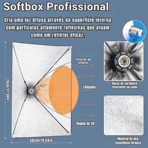 Cansado de fotos e vídeos com iluminação fraca e sem vida Transforme suas criações com um estúdio e eleve a qualidade do seu conteúdo Eleve o Nível das Suas Fotos e Vídeos: Iluminação : Crie um ambiente de estúdio com luz suave e uniforme, eliminando sombras indesejadas. Qualidade de Imagem Superior: Destaque cores, texturas e detalhes com precisão, impressionando seus clientes e seguidores. Versatilidade de Uso: Perfeito para retratos, produtos, vlogs, entrevistas e qualquer projeto que exija iluminação de alta qualidade. Fácil Montagem e Manuseio: Leve, prático e intuitivo, ideal para estúdios domésticos ou para quem precisa de mobilidade. Especificações Técnicas Detalhadas: Dimensões do Softbox: 50 x 70 cm, proporcionando uma ampla área de difusão de luz. Soquete: Padrão E27, compatível com lâmpadas de LED, fluorescentes e outras de até 200W lâmpada não inclusa . Material de Alta Qualidade: Tecido refletivo premium, dobrável e seguro, feito de fibra de poliéster não tóxica. Estrutura Robusta: 4 hastes de conexão flexíveis e um suporte de tripé estável e resistente, com altura ajustável de até 2,0 metros. Montagem Simplificada: Instalação rápida e sem complicações, para que você foque no que realmente importa: suas criações. Pronto para revolucionar sua produção Adquira agora seu Kit Softbox e veja a diferença que uma iluminação pode fazer Marca: Não Informado