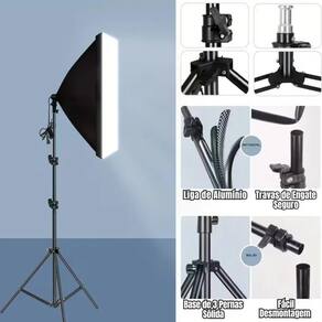 Cansado de fotos e vídeos com iluminação fraca e sem vida Transforme suas criações com um estúdio e eleve a qualidade do seu conteúdo Eleve o Nível das Suas Fotos e Vídeos: Iluminação : Crie um ambiente de estúdio com luz suave e uniforme, eliminando sombras indesejadas. Qualidade de Imagem Superior: Destaque cores, texturas e detalhes com precisão, impressionando seus clientes e seguidores. Versatilidade de Uso: Perfeito para retratos, produtos, vlogs, entrevistas e qualquer projeto que exija iluminação de alta qualidade. Fácil Montagem e Manuseio: Leve, prático e intuitivo, ideal para estúdios domésticos ou para quem precisa de mobilidade. Especificações Técnicas Detalhadas: Dimensões do Softbox: 50 x 70 cm, proporcionando uma ampla área de difusão de luz. Soquete: Padrão E27, compatível com lâmpadas de LED, fluorescentes e outras de até 200W lâmpada não inclusa . Material de Alta Qualidade: Tecido refletivo premium, dobrável e seguro, feito de fibra de poliéster não tóxica. Estrutura Robusta: 4 hastes de conexão flexíveis e um suporte de tripé estável e resistente, com altura ajustável de até 2,0 metros. Montagem Simplificada: Instalação rápida e sem complicações, para que você foque no que realmente importa: suas criações. Pronto para revolucionar sua produção Adquira agora seu Kit Softbox e veja a diferença que uma iluminação pode fazer