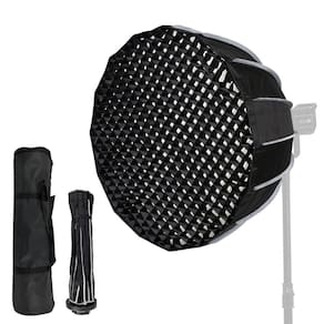 Com mecanismo de liberação rápida para configuração simples, o Softbox Parabólico RKP90 Bowens 90cm com Grade Montagem Fácil é um modificador de luz poderoso para uso em Iluminadores LED e Flash de Estúdio Bowens, que fornece diâmetro amplo de 16 lados e traz luz pronta em poucos segundos para retratos, fotografias de moda, fotografia de produtos, filmagem ao ar livre, entre outros tipos de fotografia e produções de estúdio. O softbox Circular Compacto RKP90 é o equipamento ideal para fornecer uma luz suave mais focada com os difusores ou sombras mais nítidas quando sem difusores. A estrutura parabólica hexadecágono é reforçada por 16 hastes de suporte duráveis, que agora se encaixam com a pressão para baixo de seu suporte Bowens Mount amplamente compatível, economizando valioso tempo no set. Seu formato também promove distribuição uniforme de saída de luz para uma luz suave e uniforme em qualquer imagem. Devido à sua forma parabólica, o Softbox de Estúdio RKP90 apresenta um interior prateado para maximizar a saída da fonte de luz e vem com um difusor interno e um difusor frontal de 1.5 Stops e 2.5 Stops respectivamente, além de uma grade de tecido de 40 para maior capacidade de modelagem de luz, tornando a iluminação suave e agradável. O tecido interior reflexivo reduz os pontos onde a luz não alcança. Use a grade para controlar com precisão a direção da luz ou os difusores internos para obter diferentes níveis de suavidade. As hastes do Softbox Parabólico para Luz Contínua possuem alavancas de liberação individuais, você pode montar e desmontar o softbox de maneira bem simples. utilizando suporte Bowens universal, o Softbox Parabólico de 90cm é perfeito para uma variedade de Iluminadores LED Bowens Mount, também é compatível com Flashes de Estúdio Bowens. além disso, uma bolsa de armazenamento e transporte está inclusa, permitindo guardar ou levar o equipamento a qualquer lugar.Principais Características: Softbox Circular Hexadecágono de 90cm, distribuição de luz suave e uniforme Montagem Padrão Bowens, fácil encaixe e desmontagem, ampla compatibilidade sistema de configuração simples com travas de liberação rápida Interior Prateado altamente reflexivo, maximizando a produção de fotos ou vídeos difusor interno e frontal removíveis, para obter diferentes níveis de suavidade Grade de controle de luz em tecido 40º incluída Tamanho compacto e portátil para viagens e espaços apertados Acompanha Bolsa de Transporte Ideal para estúdio fotográfico, transmissão , filmagem ao ar livre, retratos, fotografia de produtos e muito mais.Iluminador, Tripé ou Iluminador não estão inclusos, são vendidos separadamente. Imagens Ilustrativas.
