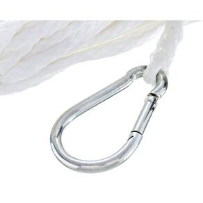 Soga para ancla Seachoice, trenzado hueco, polipropileno, blanca, con gancho muelle, 1 cm x 23 metros. - Soga para ancla de polipropileno de trenzado hueco con gancho muelle - Flexible y fácil de manejar - Segura para almacenar mojada sin riesgo de pudrición - Tamaño: 1 cm de diámetro x 23 metros de largo - Color: Blanco
