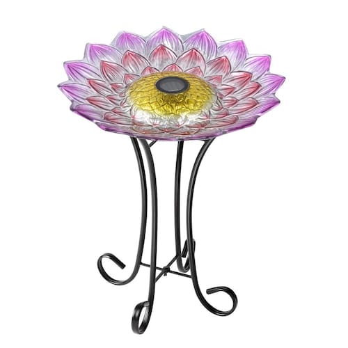 Banheira solar LED para pássaros de vidro floral Hi Line Gift Ltd. - Dália rosa