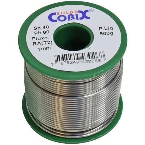 Solda estanho 40x60 1. 0mm com fluxo ra t2 rolo 500g - cobix tipo de estanho: fio solda cobix simplesmente a melhor