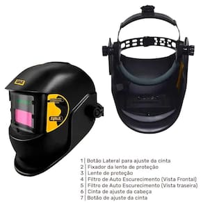 Para garantir a segurança do operador durante o processo de soldagem, a máscara EVF1020 entra como um item indispensável. Com escurecimento automático fixo no nível DIN 11, ela protege totalmente contra faíscas, radiações UV/IV e partículas volantes, ao mesmo tempo em que proporciona visão clara fora do arco. Seu design leve (480 g), apoio de cabeça ajustável e alimentação por célula solar com bateria interna recarregável garantem conforto e autonomia, mesmo em longos períodos de trabalho.