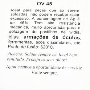 O Fio Solda Prata Ov 45% P/ Óculos Bijuteria 10 Gramas é perfeito para a soldagem de diversos tipos de peças, proporcionando alta resistência e durabilidade. Com uma porcentagem de prata de 45%, esse fio de solda possui um diâmetro de 0,50 mm, ideal para trabalhos delicados e que exigem precisão. Esse anúncio contempla um pacote de 10 gramas do fio de solda prata ov 45%, quantidade suficiente para diversas aplicações. Com ele, você pode soldar peças como pastilhas de widia, jóias, armações de óculos, ferramentas e aços dissimilares, garantindo resultados de qualidade. Além disso, o fio de solda prata ov 45% possui uma alta resistência mecânica, proporcionando uma soldagem firme e duradoura. Sua composição de 45% de prata garante a qualidade e eficiência do processo de soldagem. É importante ressaltar que, ao utilizar o fio de solda prata ov 45%, é necessário soldar sempre em um local bem ventilado e proteger os olhos. Essas medidas de segurança garantem um ambiente adequado para a soldagem e evitam danos à saúde. Estamos à disposição para esclarecer qualquer dúvida que possa surgir. Adquira agora mesmo o Fio Solda Prata Ov 45% P/ Óculos Bijuteria 10 Gramas e tenha em mãos um produto de qualidade para suas soldagens. Marca: Não Informado