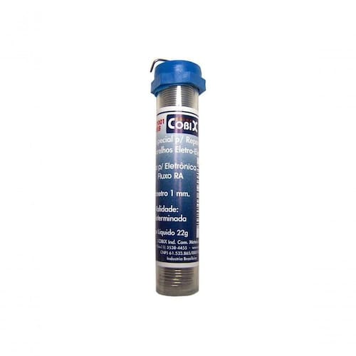 Faça sua compra agora mesmo e experimente a diferença de qualidade e segurança! A Solda Tubinho Cobix Azul, com 22 gramas de pura qualidade e diâmetro de 1mm, é a solução ideal para seus reparos em aparelhos eletro-eletrônicos.