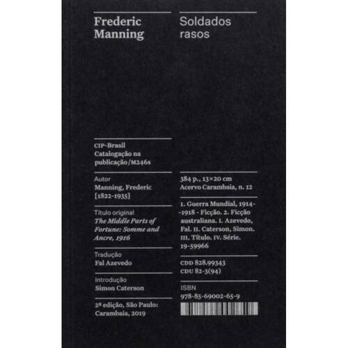 Soldados Rasos, Inédito No Brasil, Foi Publicado Pela Primeira Vez Na Inglaterra Em 1929, Em Uma Edição Com Tiragem Reduzida E, No Ano Seguinte, Em Maior Tiragem, Mas Numa Versão Com Cortes, Livre De Palavrões E Demais Expressões Consideradas Chocantes Para A Época. O Livro, Que Logo Chamou Atenção Pela Qualidade Literária Do Relato De Guerra, Foi Publicado Anonimamente. Vinha Apenas Com A Assinatura Soldado 19022 . Leitores Intrigados Com A Autoria Do Texto Acabaram Descobrindo Que Quem Estava Por Trás Daquelas Linhas Era O Escritor Australiano Frederic Manning (1882-1935). O Pseudônimo Referia-Se À Identificação Militar Que Recebeu Quando Lutou Pela Inglaterra Durante A Primeira Guerra Mundial. Conhecido Nos Círculos Literários Da Inglaterra, Onde Vivia, Manning Alistou-Se Voluntariamente No Exército Britânico E Lutou, Ao Lado De Soldados De Diversas Nacionalidades, Nas Ofensivas Franco-Britânicas Contra Os Alemães Na Região Do Vale Dos Rios Somme E Ancre, Na França, Durante O Segundo Semestre De 1916. Seu Livro É Uma Ficção Baseada No Cotidiano Dos Homens Nas Trincheiras E Acampamentos, Entre Bombas E Goles De Rum, Longas Esperas E Marchas. Manning Dá Voz Aos Soldados Anônimos, Com Seus Diferentes Sotaques E Gírias, Revelando A Percepção Ou Incompreensão Que Tinham Do Conflito. O Sucesso Do Livro Na Inglaterra Fez Autores E Críticos Investigarem A Identidade Do Soldado 19022. Foi T. E. Lawrence, Apreciador Da Escrita De Manning E Que Considerava A Obra O Livro Dos Livros Sobre O Exército Britânico, Quem A Desvendou E Forçou O Autor A Sair Do Anonimato. Cultuado Por Escritores Como Ezra Pound, T. S. Eliot Ou E. M. Forster, Soldados Rasos Só Foi Relançado Em Sua Versão Completa Na Inglaterra No Final Dos Anos 1970. Essa Foi A Edição Usada Como Base Para A Primeira Tradução Da Obra Para O Português. Ernest Hemingway Declarou Certa Vez Que Considerava O Livro De Manning Como O Mais Belo E Mais Nobre De Todos Os Que Já Lera Sobre A Guerra E Os Homens Que A Fizeram . Eu O Releio A Cada Ano, Para Me Lembrar De Como As Coisas Realmente Eram, Para Não Ter Nunca De Mentir A Mim Mesmo Ou Aos Outros Sobre O Que Foi Essa Realidade , Disse.