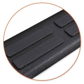 produto na cor preto. Fabricadas em plástico injetado. Fácil instalação. Textura antiderrapante. Fixação por fita 3m dupla face. Possui 4 peças. Medidas da soleira dianteira: 45 cm x 5 cm. Medidas da soleira traseira: 23,5 cm x 5 cm. Conteúdo da embalagem:
