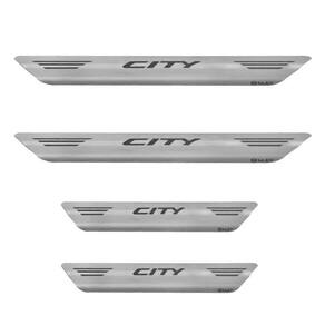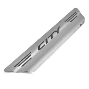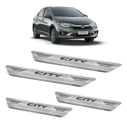 Sobre o produto: Pelo fato de ser produzida em Aço Inoxidável, esta Soleira é super-resistente e não enferruja. A instalação é Fácil, e pode ser feita em casa sem nenhum problema. A fixação é personalizada, é feita com Fita 3M Especial, que não altera a espessura do Produto, garantindo assim excelente durabilidade sem causar danos ao seu veículo. A Soleira de Porta protege seu carro contra riscos, além de proporcionar um visual esportivo para o automóvel, pois é personalizado e fabricado sob medida para cada veículo com alto padrão de tecnologia e matéria prima. Especificação: - Alta resistência - Rigoroso controle de qualidade - Maior cobertura da área das soleiras - Corte e gravação a laser - Indentificação do modelo de cada soleira - Não deixa rebarba por ser cortado a laser - Fabricado em aço inox escovado de 0,6mm de alta qualidade - Fixação por fita dupla face 3M, a melhor do mercado - Tamanho Dianteira : 50cm X 05cm CxA - Traseira : 23cm X 05cm CxA Conteúdo da Embalagem: 02 - Soleiras Dianteiras 02 - Soleiras Traseiras Compatível com: - Honda City 2015 à 2020 compatível para todas as versões de 03 meses. Imagens ilustrativas. Recomendamos que a instalação seja realizada por um profissional Marca: Não Informado Ean: 7898622472939