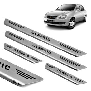 Soleira Aço Inox Escovado Porta Mult Classic 2017 Soleira Aço Inox Escovado Porta Mult Classic 2011 2012 2013 2014 2015 2016 2017 2018 2019 2020 Pelo fato de ser produzida em Aço Inoxidável, esta Soleira é super-resistente e não enferruja. A instalação é Fácil, e pode ser feita em casa sem nenhum problema. A fixação é personalizada, é feita com Fita 3M Especial, que não altera a espessura do Produto, garantindo assim excelente durabilidade sem causar danos ao seu veículo. A Soleira de Porta protege seu carro contra riscos, além de proporcionar um visual esportivo para o automóvel, pois é personalizado e fabricado sob medida para cada veículo com alto padrão de tecnologia e matéria prima. Especificações: Alta resistência. Rigoroso controle de qualidade. Maior cobertura da área das soleiras. Corte e gravação a laser. Identificação do modelo de cada soleira. Não deixa rebarba por ser cortado a laser. Fabricado em aço inox escovado de 0,6mm de alta qualidade. Fixação por fita dupla face 3M, a melhor do mercado. Tamanho Dianteiro: 45 cm X 3,5 cm CxA . Tamanho Traseira: 25 cm X 3,5 cm CxA . Conteúdo da Embalagem: 02 - Soleiras Dianteiras. 02 - Soleiras Traseiras. Compatível com: Chevrolet Classic 2011 à 2020 compatível para todas as versões de 03 meses, contra defeitos de fabricação. Imagens ilustrativas. Recomendamos que a instalação seja realizada por um . ----------------------------- Soleira Aço Inox Escovado Porta Mult Classic 11-20 ----------------------------- Este produto é vendido e entregue pela TEXAS 4X4 A maior rede de lojas com os menores preços em acessórios para Motos, Carros Sedan e Hatch, SUVs e Pick-ups Seu produto acompanha e . Atenção: As compras realizadas em nome de Pessoa Jurídica estão sujeitas à cobrança de ICMS, conforme Protocolo ICMS 41, de 4 de Abril de 2008. Caso você tenha dúvidas sobre o percentual a ser aplicado, consulte a Cláusula Segunda, 1 do referido Protocolo. Marca: Não Informado
