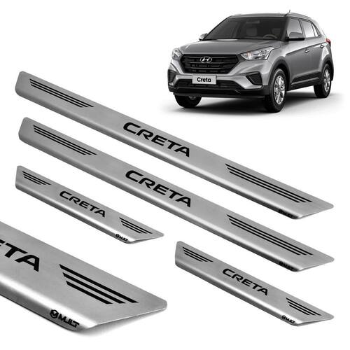 Soleira Aço Inox Escovado Porta Mult Creta 2019 Soleira Aço Inox Escovado Porta Mult Creta 2017 2018 2019 2020 2021 Pelo fato de ser produzida em Aço Inoxidável, esta Soleira é super-resistente e não enferruja. A instalação é Fácil, e pode ser feita em casa sem nenhum problema. A fixação é personalizada, é feita com Fita 3M Especial, que não altera a espessura do Produto, garantindo assim excelente durabilidade sem causar danos ao seu veículo. A Soleira de Porta protege seu carro contra riscos, além de proporcionar um visual esportivo para o automóvel, pois é personalizado e fabricado sob medida para cada veículo com alto padrão de tecnologia e matéria prima. Especificações: Alta resistência. Rigoroso controle de qualidade. Maior cobertura da área das soleiras. Corte e gravação a laser. Identificação do modelo de cada soleira. Não deixa rebarba por ser cortado a laser. Fabricado em aço inox escovado de 0,6mm de alta qualidade. Fixação por fita dupla face 3M, a melhor do mercado. Tamanho Dianteira : 50 cm X 05 cm CxA . Tamanho Traseira : 16 cm X 05 cm CxA . Conteúdo da Embalagem: 02 - Soleiras Dianteiras. 02 - Soleiras Traseiras. Compatível com: Hyundai Creta 2017 à 2021 compatível para todas as versões de 03 meses, contra defeitos de fabricação. Imagens ilustrativas. Recomendamos que a instalação seja realizada por um . ----------------------------- Soleira Aço Inox Escovado Porta Mult Creta 17-21 ----------------------------- Este produto é vendido e entregue pela TEXAS 4X4 A maior rede de lojas com os menores preços em acessórios para Motos, Carros Sedan e Hatch, SUVs e Pick-ups Seu produto acompanha e . Atenção: As compras realizadas em nome de Pessoa Jurídica estão sujeitas à cobrança de ICMS, conforme Protocolo ICMS 41, de 4 de Abril de 2008. Caso você tenha dúvidas sobre o percentual a ser aplicado, consulte a Cláusula Segunda, 1 do referido Protocolo. Marca: Não Informado