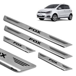 pelo fato de ser produzida em aço inoxidável, esta soleira é super-resistente e não enferruja. A instalação é fácil, e pode ser feita em casa sem nenhum problema. A fixação é personalizada, é feita com fita 3m especial, que não altera a espessura do produto, garantindo assim excelente durabilidade sem causar danos ao seu veículo. A soleira de porta protege seu carro contra riscos, além de proporcionar um visual esportivo para o automóvel, pois é personalizado e fabricado sob medida para cada veículo com alto padrão de tecnologia e matéria prima. Especificações: alta resistência. Rigoroso controle de qualidade. Maior cobertura da área das soleiras. Corte e gravação a laser. Identificação do modelo de cada soleira. Não deixa rebarba por ser cortado a laser. Fabricado em aço inox escovado de 0,6mm de alta qualidade. Fixação por fita dupla face 3m, a melhor do mercado. Tamanho dianteiro: 50 cm x 5 cm cxa . Tamanho traseira: 35 cm x 5 cm cxa . Conteúdo da embalagem: 02 - soleiras dianteiras. 02 - soleiras traseiras. Compatível com: volkswagen fox 2006 à 2022 compatível para todas as versões
