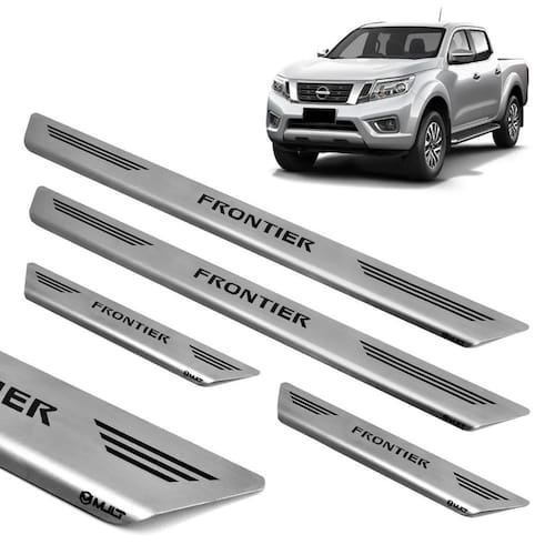 Soleira Aço Inox Escovado Porta Mult Frontier 2018 Soleira Aço Inox Escovado Porta Mult Frontier 2012 2013 2014 2015 2016 2017 2018 2019 2020 2021 2022 Pelo fato de ser produzida em Aço Inoxidável, esta Soleira é super-resistente e não enferruja. A instalação é Fácil, e pode ser feita em casa sem nenhum problema. A fixação é personalizada, é feita com Fita 3M Especial, que não altera a espessura do Produto, garantindo assim excelente durabilidade sem causar danos ao seu veículo. A Soleira de Porta protege seu carro contra riscos, além de proporcionar um visual esportivo para o automóvel, pois é personalizado e fabricado sob medida para cada veículo com alto padrão de tecnologia e matéria prima. Especificações: Alta resistência. Rigoroso controle de qualidade. Maior cobertura da área das soleiras. Corte e gravação a laser. Identificação do modelo de cada soleira. Não deixa rebarba por ser cortado a laser. Fabricado em aço inox escovado de 0,6mm de alta qualidade. Fixação por fita dupla face 3M, a melhor do mercado. Tamanho Dianteira : 50 cm X 5 cm CxA . Tamanho Traseira : 25 cm X 5 cm CxA . Conteúdo da Embalagem: 02 - Soleiras Dianteiras. 02 - Soleiras Traseiras. Compatível com: Nissan Frontier 2012 à 2022 compatível para todas as versões de 03 meses, contra defeitos de fabricação. Imagens ilustrativas. Recomendamos que a instalação seja realizada por um profissional. ----------------------------- Soleira Aço Inox Escovado Porta Mult Frontier 12-22 ----------------------------- Este produto é vendido e entregue pela TEXAS 4X4 A maior rede de lojas com os menores preços em acessórios para Motos, Carros Sedan e Hatch, SUVs e Pick-ups Seu produto acompanha e . Atenção: As compras realizadas em nome de Pessoa Jurídica estão sujeitas à cobrança de ICMS, conforme Protocolo ICMS 41, de 4 de Abril de 2008. Caso você tenha dúvidas sobre o percentual a ser aplicado, consulte a Cláusula Segunda, 1 do referido Protocolo. Marca: Não Informado
