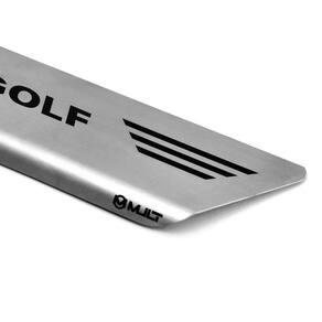 Pelo fato de ser produzida em ao inoxid vel, esta soleira super-resistente e no enferruja. A instalao f cil, e pode ser feita em casa sem nenhum problema. A fixao personalizada, feita com fita 3m especial, que no altera a espessura do produto, garantindo assim excelente durabilidade sem causar danos ao seu veculo. A soleira de porta protege seu carro contra riscos, alm de proporcionar um visual esportivo para o automvel, pois personalizado e fabricado sob medida para cada veculo com alto padro de tecnologia e matria prima. Especificaes: alta resistncia. Rigoroso controle de qualidade. Maior cobertura da rea das soleiras. Corte e gravao a laser. Identificao do modelo de cada soleira. No deixa rebarba por ser cortado a laser. Fabricado em ao inox escovado de 0,6mm de alta qualidade. Fixao por fita dupla face 3m, a melhor do mercado. Tamanho dianteira : 50 cm x 5 cm cxa . Tamanho traseira : 20 cm x 5 cm cxa . Contedo da embalagem: 02 - soleiras dianteiras. 02 - soleiras traseiras. Compatvel com: volkswagen golf 2014. . . 2022 compatvel para todas as verses