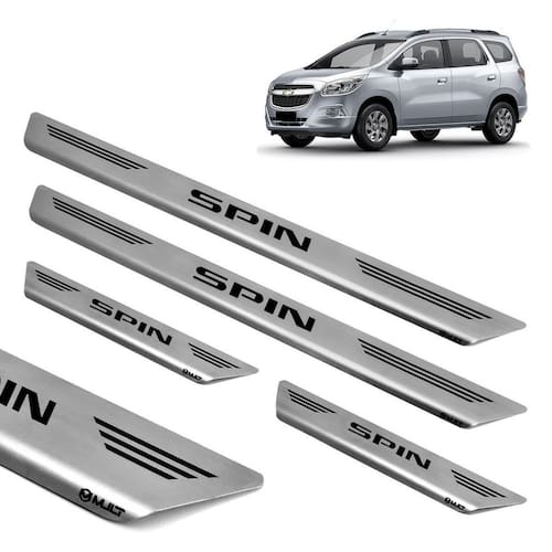 pelo fato de ser produzida em aço inoxidável, esta soleira é super-resistente e não enferruja. A instalação é fácil, e pode ser feita em casa sem nenhum problema. A fixação é personalizada, é feita com fita 3m especial, que não altera a espessura do produto, garantindo assim excelente durabilidade sem causar danos ao seu veículo. A soleira de porta protege seu carro contra riscos, além de proporcionar um visual esportivo para o automóvel, pois é personalizado e fabricado sob medida para cada veículo com alto padrão de tecnologia e matéria prima. Especificações: alta resistência. Rigoroso controle de qualidade. Maior cobertura da área das soleiras. Corte e gravação a laser. Identificação do modelo de cada soleira. Não deixa rebarba por ser cortado a laser. Fabricado em aço inox escovado de 0,6mm de alta qualidade. Fixação por fita dupla face 3m, a melhor do mercado. Tamanho dianteiro: 50 cm x 5 cm cxa . Tamanho traseira: 30 cm x 5 cm cxa . Conteúdo da embalagem: 02 - soleiras dianteiras. 02 - soleiras traseiras. Compatível com: chevrolet spin 2013 à 2023 compatível para todas as versões
