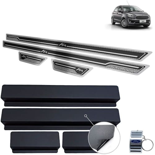 Soleira Aço Inox Ford Ka Titanium Preto Alto Relevo