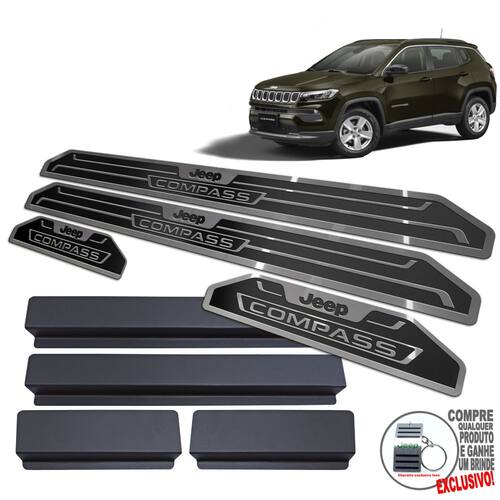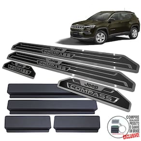Soleira Aço Inox Jeep Compass 2022 Preto Alto Relevo
