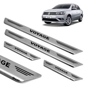 pelo fato de ser produzida em aço inoxidável, esta soleira é super-resistente e não enferruja. A instalação é fácil, e pode ser feita em casa sem nenhum problema. A fixação é personalizada, é feita com fita 3m especial, que não altera a espessura do produto, garantindo assim excelente durabilidade sem causar danos ao seu veículo. A soleira de porta protege seu carro contra riscos, além de proporcionar um visual esportivo para o automóvel, pois é personalizado e fabricado sob medida para cada veículo com alto padrão de tecnologia e matéria prima. Especificações: alta resistência. Rigoroso controle de qualidade. Maior cobertura da área das soleiras. Corte e gravação a laser. Identificação do modelo de cada soleira. Não deixa rebarba por ser cortado a laser. Fabricado em aço inox escovado de 0,6mm de alta qualidade. Fixação por fita dupla face 3m, a melhor do mercado. Tamanho dianteiro: 50 cm x 5 cm cxa . Tamanho traseira: 25 cm x 5 cm cxa . Conteúdo da embalagem: 02 - soleiras dianteiras. 02 - soleiras traseiras. Compatível com: volkswagen voyage 2009 à 2022 compatível para todas as versões