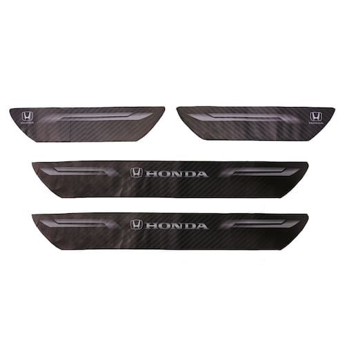 Pelo contato constante com as solas dos calçados, poeiras e detritos, as soleiras das portas costumam perder facilmente suas características estéticas, desta forma, este adesivo permite não somente a proteção desta área como sua diferenciação estética. Ela contém a logomarca do fabricante, e possui um efeito de fibra de carbono dando um toque esportivo ao seu carro!Aplicação: Carros da linha Honda