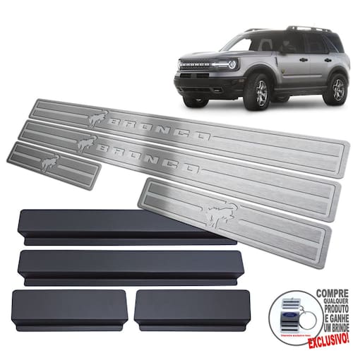 Soleira De Porta Inox Ford Bronco Sport Prata Baixo Relevo