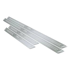 Além de dar um toque sofisticado ao seu veículo, o KIT DE SOLEIRA PARA PORTAS protege o o veículo de eventuais arranhões. Fabricado em AÇO INOX 304 ESCOVADO, a gravação diretamente na peça garante um produto de qualidade e durabilidade incomparável, que vai fazer a diferença no visual do seu carro!