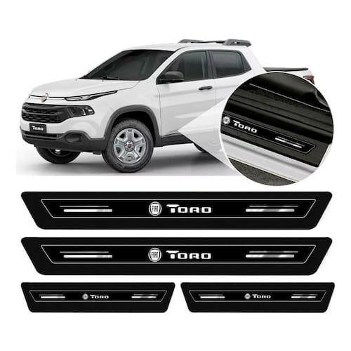 Adesivo Resinado Soleira Porta Fiat Toro Modelo Preto Platinum EmblemaTech Além de fazerem toda a diferença no acabamento do seu Fiat Toro,Esses adesivos para as soleiras das portas trazem proteção essencial para essa região do automóvel absorvendo os impactos dos sapatos dos passageiros e do motorista, evitando riscos. De fácil aplicação, as 4 peças tem verso autoadesivo e são super resistentes, sendo feitas em material resinado durável e com proteção contra ressecamento. Sua cor preta é super moderna e grafia cromada traz um toque de esportividade para o carro. Cor Disponível: Preto com Grafia Cromada Compatível com: Fiat Toro Especificação Técnica: Feito em Material Resinado Resistente Disponível na Cor Preta Detalhes em Cromo de Alto Brilho Personalizados com Grafia da Marca do Carro Fixação por Verso Adesivo Maior Resistência e Proteção para a Soleira da Porta Conteúdo da Embalagem: 04 Adesivos Resinados 04 Adesivos Poroso Dica: A aplicação deve ser feita sobre a superfície limpa e seca. Recomenda-se evitar molhar o veículo pelo período mínimo de 24 horas após a fixação, para garantir a sua estabilidade. Importante: de 3 meses. Valor do Jogo. Imagens Meramente Ilustrativas. Recomendamos que a instalação seja feita por profissional especializado e não nos responsabilizamos pelo mau uso do produto. Marca: Não Informado Ean: 7908698107939