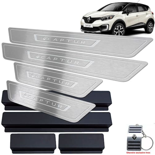 Soleira Em Aço Inox Captur 2017/2020 Prata Baixo Relevo