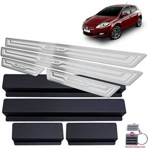 Soleira Em Aço Inox Fiat Bravo 2011 A 2016 Prata Alto Relevo