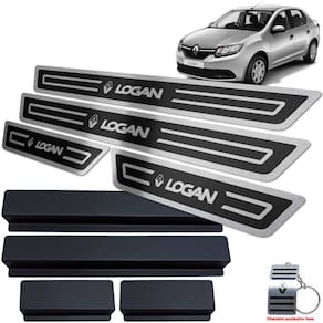 Soleira Em Inox Renault Logan 2014 A 2019 Preto Alto Relevo