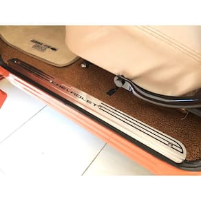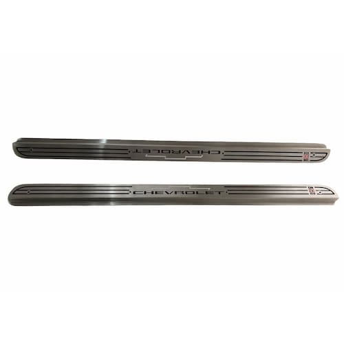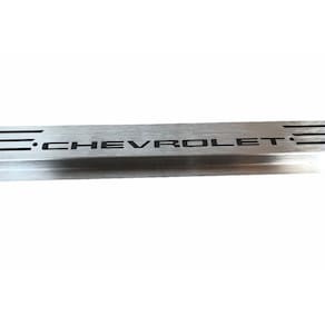 Soleiras de Inox para Chevrolet C10 PerformanceV8 Par de Soleiras de fabricação em Inox; Gravação em baixo relevo em CNC com acabamento escovado de alto padrão; Compatível com todos os anos e modelos da Chevrolet C10 sem adaptação ou seja, plug and play; Alto padrão de acabamento. Marca: Não Informado Ean: 7899603059101