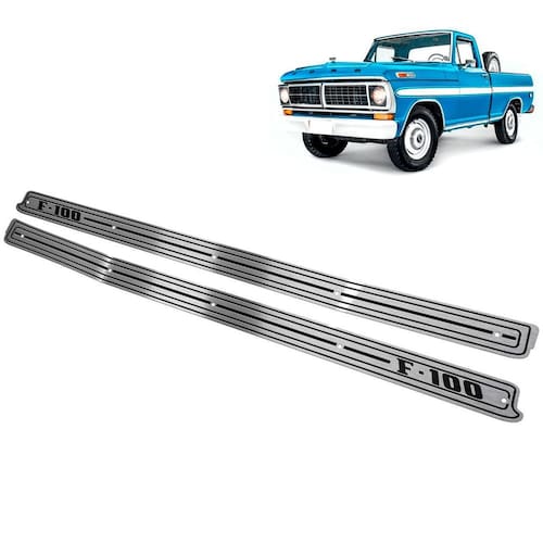 Par de Soleiras de fabricação em Inox; Gravação em baixo relevo em CNC com acabamento escovado de alto padrão; Compatível com ano e modelo de F100/F1000 de 1972 à 1992; Alto padrão de acabamento. Marca: PerformanceV8 Ean: 7899603061180