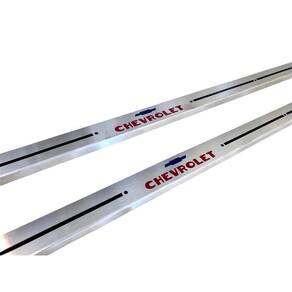 Par de Soleiras de fabricação em Inox; Gravação em baixo relevo em CNC com acabamento escovado de alto padrão com emblema colorido; Compatível com todos os anos e modelos da Chevrolet Boca de Sapo de 1947 à 1955 sem adaptação ou seja, plug and play; Alto padrão de acabamento. Marca: Não Informado Ean: 7899603061289