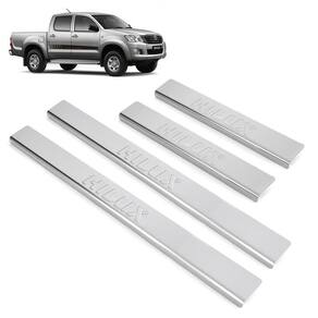 Soleira inox cromada alto relevo hilux cabine dupla 2013 Soleira aço inox 4 portas original brasikar hilux cd 2005 2006 2007 2008 2009 2010 2011 2012 2013 2014 2015 Sobre o produto: Pelo fato de ser produzida em aço inoxidável, esta soleira é super-resistente e não enferruja. Especificação técnica: Alta resistência. Rigoroso controle de qualidade. Maior cobertura da área das soleiras. Corte e escrito em alto relevo. Identificação do modelo de cada soleira. Não deixa rebarba por ser cortado a laser. Fabricado em aço inox de 1mm de alta qualidade. Fixação por fita dupla face, a melhor do mercado. Tamanho dianteira: 50cm x 4,5cm (cxa). Tamanho traseira: 29cm x 4,5cm (cxa). Conteúdo da embalagem: 02 soleiras dianteiras. 02 soleiras traseiras. Compatível com: Toyota hilux 2005 à 2015 (compatível para todas as versões e cabines) Garantia de 03 meses, contra defeitos de fabricação. Imagens ilustrativas. Recomendamos que a instalação seja realizada por um profissional. ----------------------------- Soleira aço inox 4 portas original brasikar hilux cd 05-15 ----------------------------- Este produto é vendido e entregue pela texas 4x4 A maior rede de lojas com os menores preços em acessórios para carros e pick-ups Seu produto acompanha nota fiscal e garantia. Atenção: as compras realizadas em nome de pessoa jurídica estão sujeitas à cobrança de icms, conforme protocolo icms 41, de 4 de abril de 2008. Caso você tenha dúvidas sobre o percentual a ser aplicado, consulte a cláusula segunda, 1 do referido protocolo. Marca: Texas 4X4