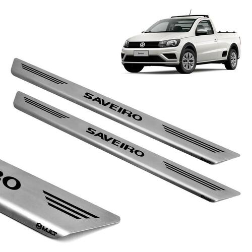 pelo fato de ser produzida em aço inoxidável, esta soleira é super-resistente e não enferruja. A instalação é fácil, e pode ser feita em casa sem nenhum problema. A fixação é personalizada, é feita com fita 3m especial, que não altera a espessura do produto, garantindo assim excelente durabilidade sem causar danos ao seu veículo. A soleira de porta protege seu carro contra riscos, além de proporcionar um visual esportivo para o automóvel, pois é personalizado e fabricado sob medida para cada veículo com alto padrão de tecnologia e matéria prima. Especificações: alta resistência. Rigoroso controle de qualidade. Maior cobertura da área das soleiras. Corte e gravação a laser. Identificação do modelo de cada soleira. Não deixa rebarba por ser cortado a laser. Fabricado em aço inox escovado de 0,6mm de alta qualidade. Fixação por fita dupla face 3m, a melhor do mercado. Tamanho dianteira : 60 cm x 5 cm cxa . Conteúdo da embalagem: 02 - soleiras dianteiras. Compatível com: volkswagen saveiro 2009 à 2022 compatível para todas as versões cabine simples