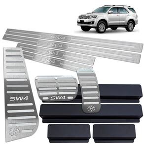 Fabricado em aço inox 304 o kit soleiras, vinil, pedaleiras e descanso de pé além de ajudar a proteger o local onde há o desgaste devido o calçado ficar o tempo todo esfregando, deixará o interior do veículo personalizado e com muito mais estilo.