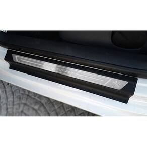 Fabricado em aço inox 304 o kit soleiras, vinil, pedaleiras e descanso de pé além de ajudar a proteger o local onde há o desgaste devido o calçado ficar o tempo todo esfregando, deixará o interior do veículo personalizado e com muito mais estilo.