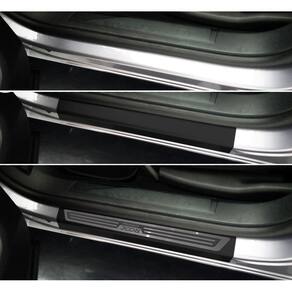 Fabricado em aço inox 304 o kit soleiras, vinil, pedaleiras e descanso de pé além de ajudar a proteger o local onde há o desgaste devido o calçado ficar o tempo todo esfregando, deixará o interior do veículo personalizado e com muito mais estilo.