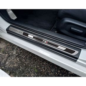 Fabricado em aço inox 304 o kit soleiras, vinil, pedaleiras e descanso de pé além de ajudar a proteger o local onde há o desgaste devido o calçado ficar o tempo todo esfregando, deixará o interior do veículo personalizado e com muito mais estilo.
