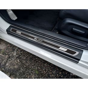 Fabricado em aço inox 304 o kit soleiras, vinil, pedaleiras e descanso de pé além de ajudar a proteger o local onde há o desgaste devido o calçado ficar o tempo todo esfregando, deixará o interior do veículo personalizado e com muito mais estilo.