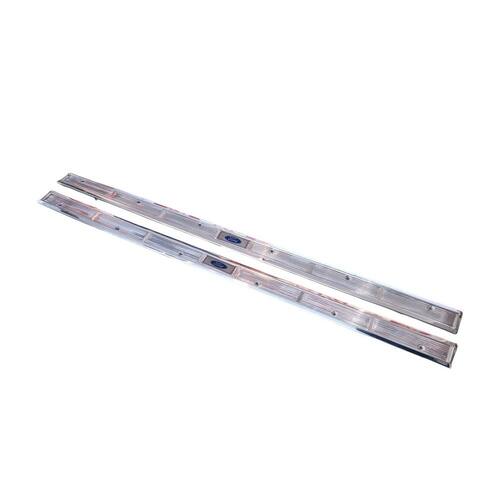 par de soleiras de aluminio modelo ; fabricado em aluminio com as mesmas características e dimensões ; acompanha plaqueta logo ford; compatível com todos os anos e modelos do ford maverick 1973/1979 2 portas sem adaptação ou seja, plug and play; alto padrão de acabamento e qualidade; Marca: PerformanceV8