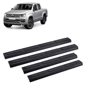 produto na cor preto. Fabricadas em plástico injetado. Fácil instalação. Textura antiderrapante. Fixação por fita 3m dupla face. Possui 4 peças. Medidas da soleira dianteira: 45,5 cm x 5 cm. Medidas da soleira traseira: 34,5 cm x 5 cm. Conteúdo da embalagem: