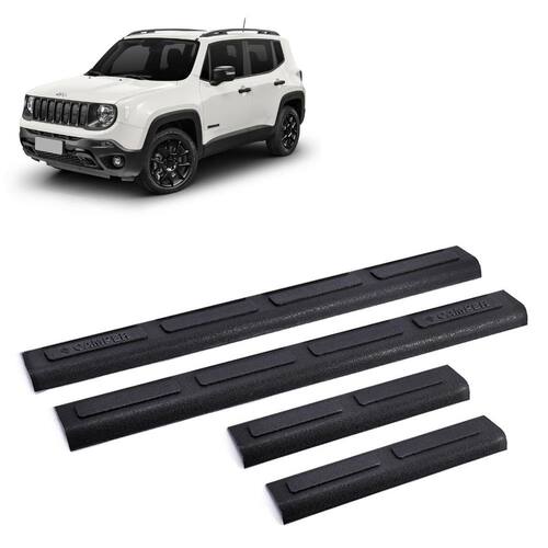 A soleira injetada desenvolvida pela camper, produto fabricado especialmente para seu veículo, sem que ocorra a danificação do produto devido ao fluxo de motorista e passageiros, no ato do embarque e desembarque. Além de sua importância na conservação. Produto fabricado em plástico injetado em alta qualidade e durabilidade, possui textura antiderrapante, proporcionando assim maior segurança, conta com excelente acabamento personalizado. Além de ser produzido com encaixe perfeito para seu veículo, instalado sobre superfície limpa e seca, garantindo a melhor fixação do produto. Especificações: produto na cor preto. Fabricadas em plástico injetado. Fácil instalação. Textura antiderrapante. Fixação por fita 3m dupla face. Possui 4 peças. Medidas da soleira dianteira: 46 cm x 4,5 cm. Medidas da soleira traseira: 23,5 cm x 4,5 cm. Conteúdo da embalagem: 02 - soleiras dianteiras. 02 - soleiras traseiras. Compatível com: renegade 2016 à 2023. compatível para todas as versões . Garantia de 03 meses, contra defeitos de fabricação. Imagens ilustrativas. Recomendamos que a instalação seja realizada por um profissional. ----------------------------- soleira porta plástico injetado preto renegade 2016 - 2023 -----------------------------